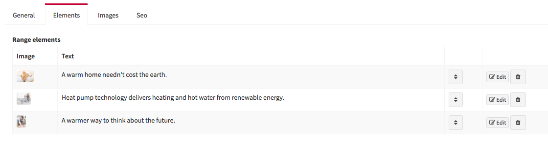 A standard range is a collections of products by type. These will appear in the Ranges section of the website. You will need to create all the ranges: Air Conditioning, Heating, Commercial Air Conditioning, VRF Systems, Chillers and Air Renovation.