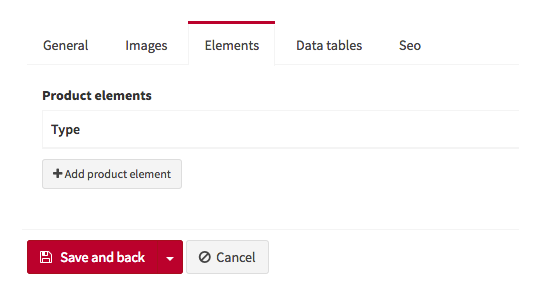 Here we can create new elements by clicking on Add Product Element. These elements